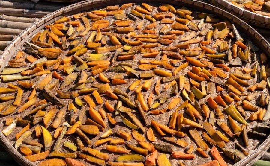 3、曬一天之后,第二天把紅薯干拿進來,繼續放在蒸籠中,大火燒開后蒸10—12分鐘,然后繼續放在外面曬一天。第二次蒸,然后再拿出去曬,這是第二個重要步驟。曬得時候,一定要找天氣好的時候,有太陽的時候,不然容易發霉。